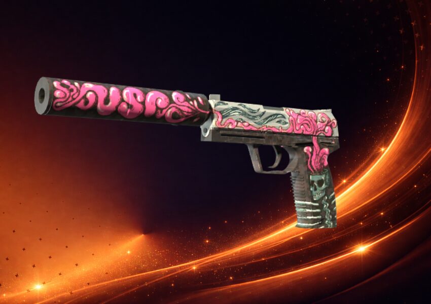 USP-S | Cortex is one of the most effective skins of the “Classified” class. The pistol possesses a brown skeleton, on which a bright pink brain splatter motif dominates, stretching along the entire silencer. This model is commonly recognized as one of the prettiest pink skins in the game, and its expressive coloring contrasts great with darker textures of maps.