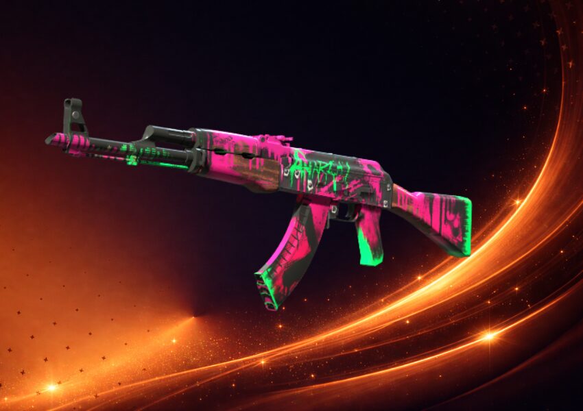 A skin for the AK-47 that combines punk styling with bright colors. The weapon looks like it was chaotically spray-painted in shades of intense pink and green, with a clear “Anarchy” inscription applied to the body. As the float parameter increases, the colors lose their glow and become more muted.